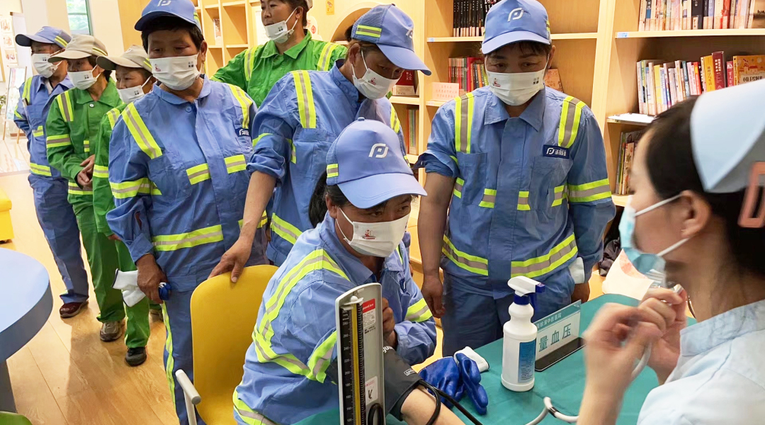 活动当天,徐浦中医医院组织了中医内科、口腔科、中医骨伤科医护人员,现场为环卫工人们提供血压血糖测量、中医把脉问诊、口腔健康检查、用药康复指导等健康服务项目,提建立“一人一档”健康档案,引导环卫工人们对自身健康情况做到早知道、早预防、早治疗,有效的把健康关怀送到新就业群体心中。